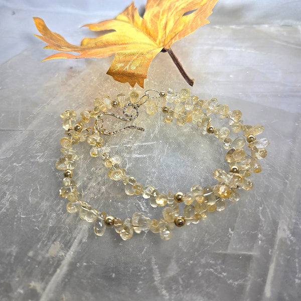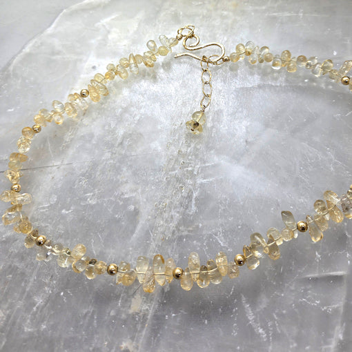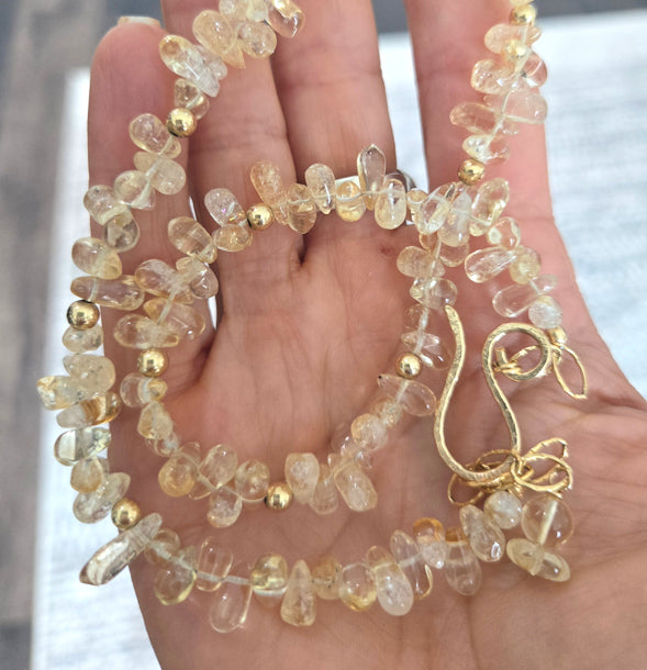 Natural citrine beads strung using 14kt gold filled clasp and findings, adjustable to 17.5 inches. Easy hook and eye clasp.