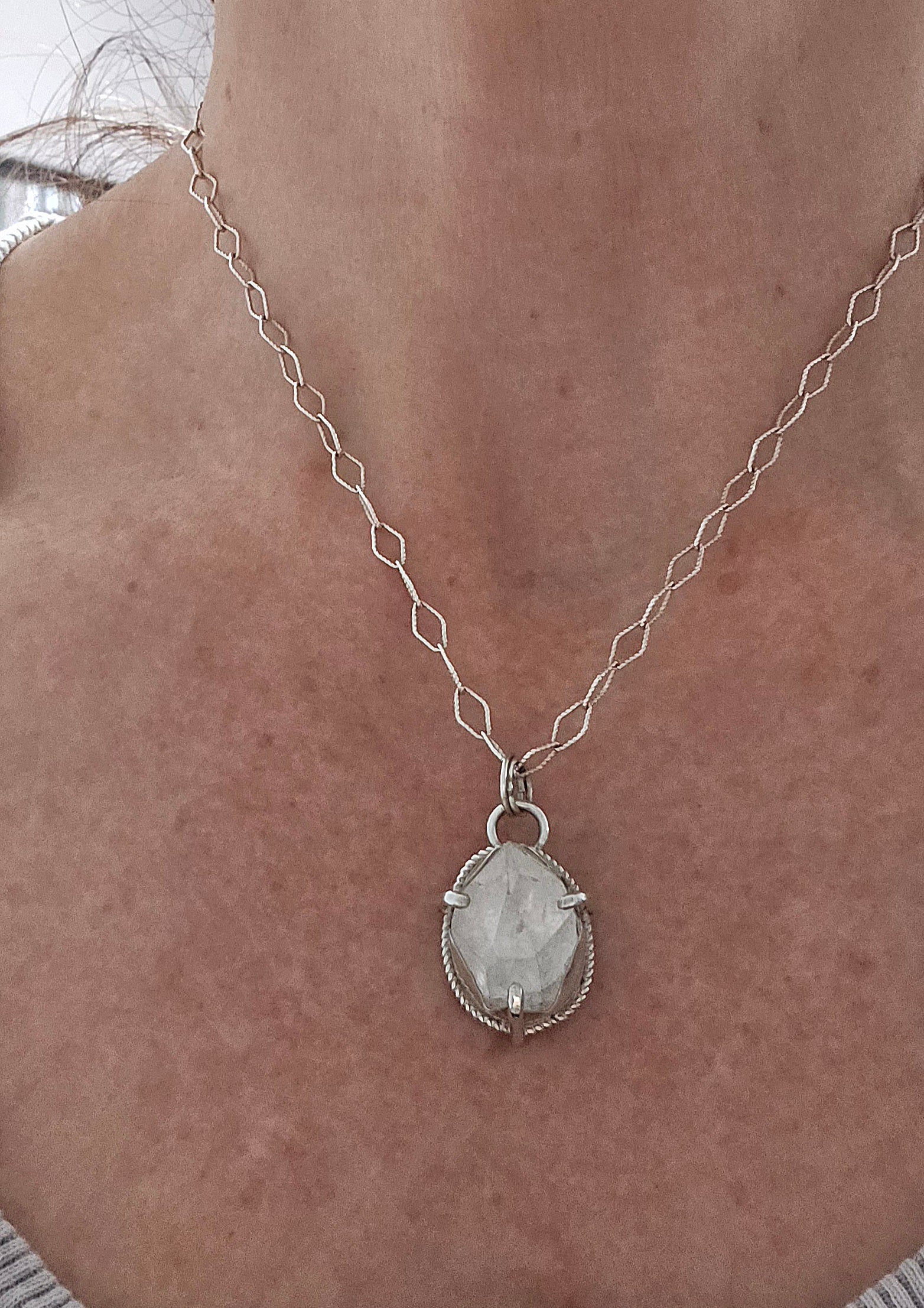 Raw rock crystal, herkimer diamond set using .925 sterling silver.