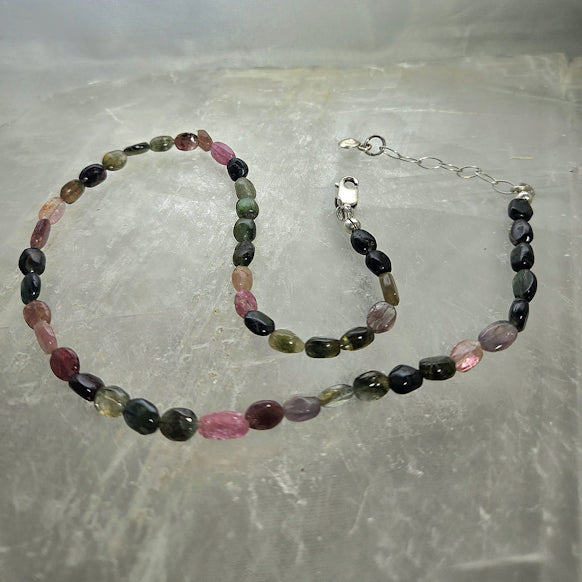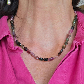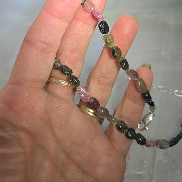 Smooth oval tourmaline beads strung using .925 sterling silver clasp and findings.